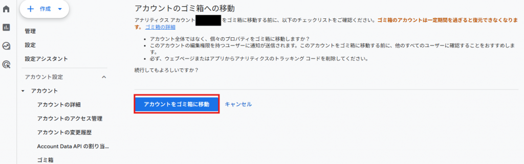 - 最後に「アカウントをゴミ箱に移動」を選択して削除完了!