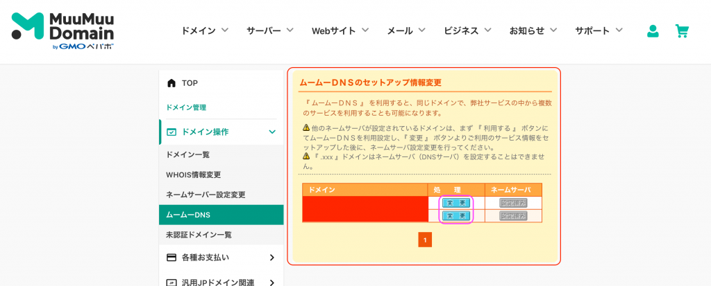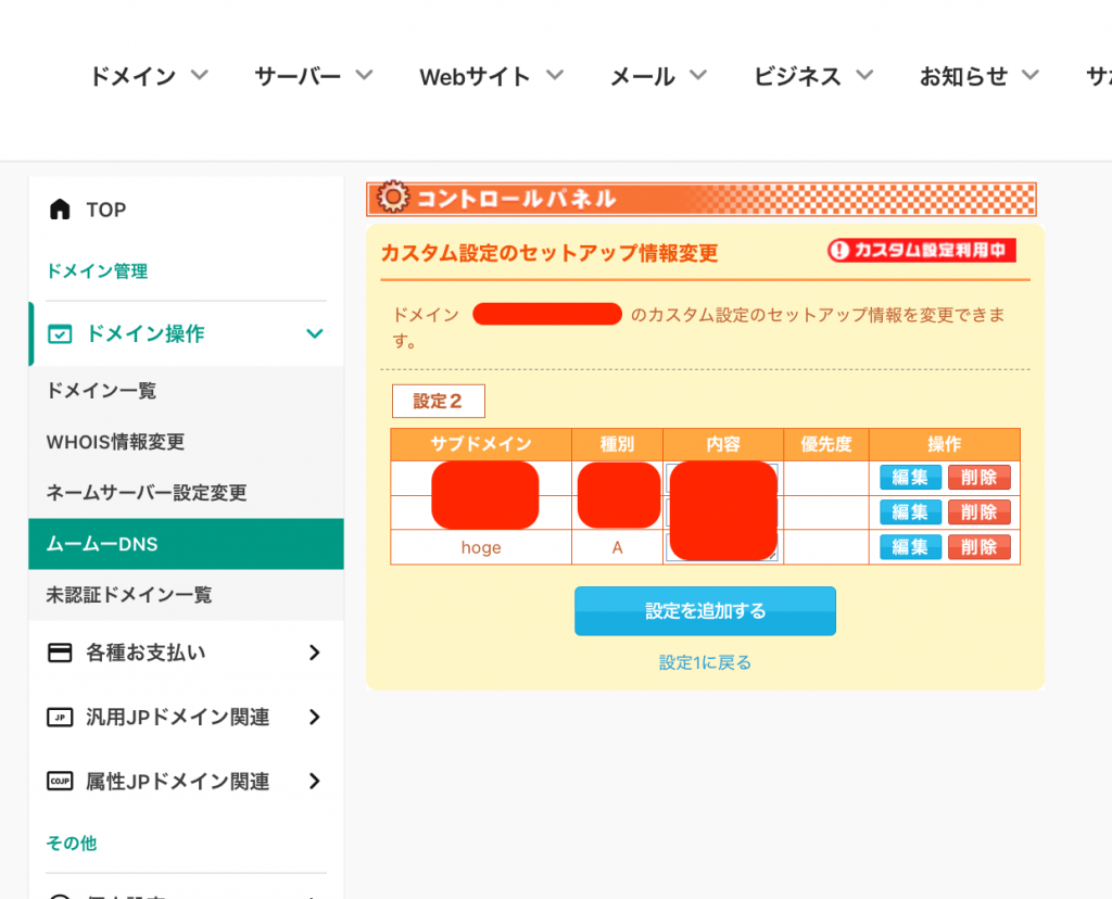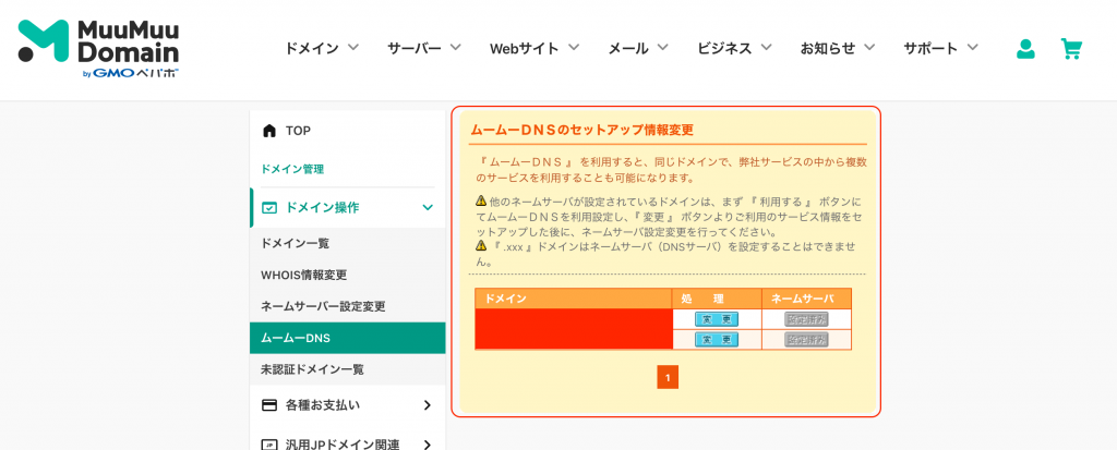他のサービスを使って気づいた事ですが、ムームードメインはUIはかなり古い感じはしますが