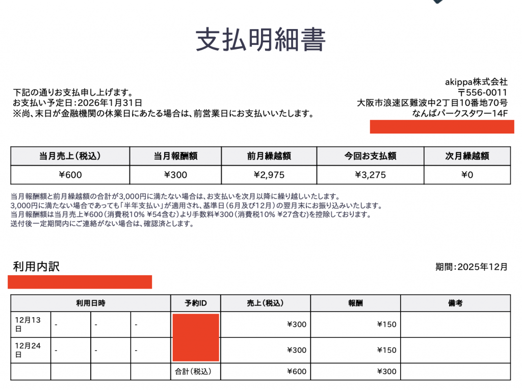 今回は2025年12月分の売上・振込額の詳細を公開します。